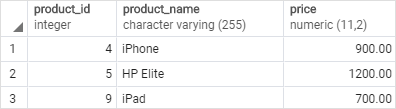 우리는 products 테이블을 사용하여 DENSE_RANK() 함수를 시연합니다.
